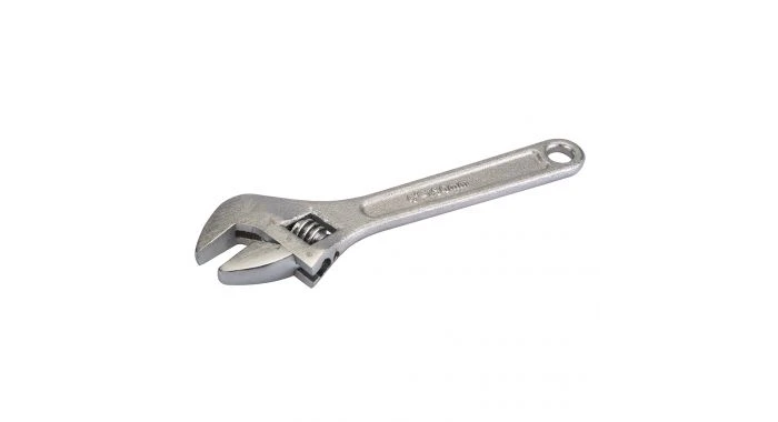 Gesmede, chroom geplateerde moersleutel met gepolijste kaken en een soepele kaakverstelling.